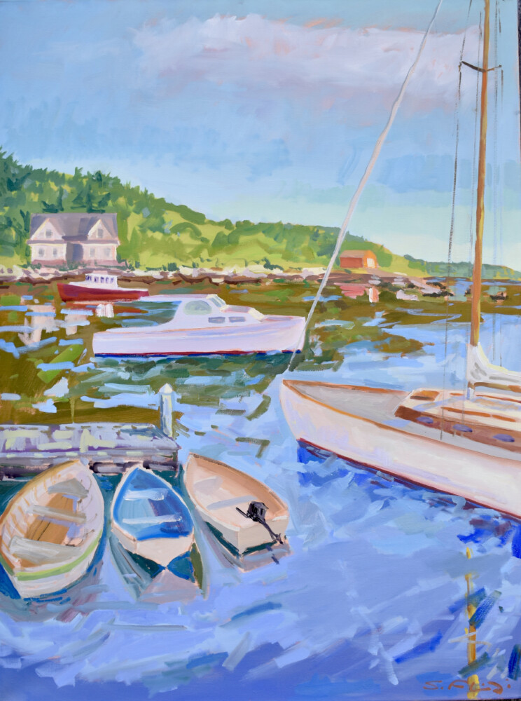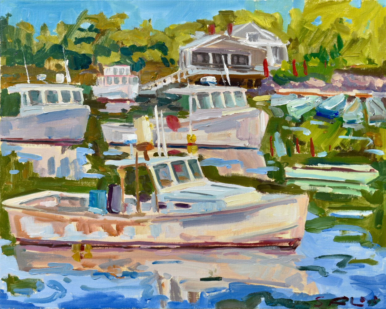 As a wooden boatbuilder it’s hard to resist painting boats and the people who build them. Painted primarily from life, my paintings are an exploration into my own relationship to the craft and to the beautiful complex shapes on the water. All work is oil on canvas.